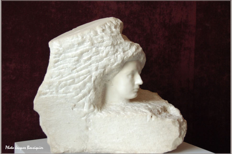 La sculpture n’a pas de décor. Son décor, c’est l’espace où je me tiens. Et c’est surtout ces assemblages improbables qu’elle permet : des baigneuses insouciantes sous une énorme vague prête à se refermer sur elles… excusez-moi, ça c’est du Claudel. Restons chez Rodin : un corps de femme sortant d’une poterie grecque, une femme accroupie dans les bras d’un homme qui levait ses mails au ciel. Un visage lisse sort d’un bloc resté brut. La pierre qui donne sa force à la sculpture, la sculpture qui donne du sens à la pierre. Ordre et chaos se nourrissent.